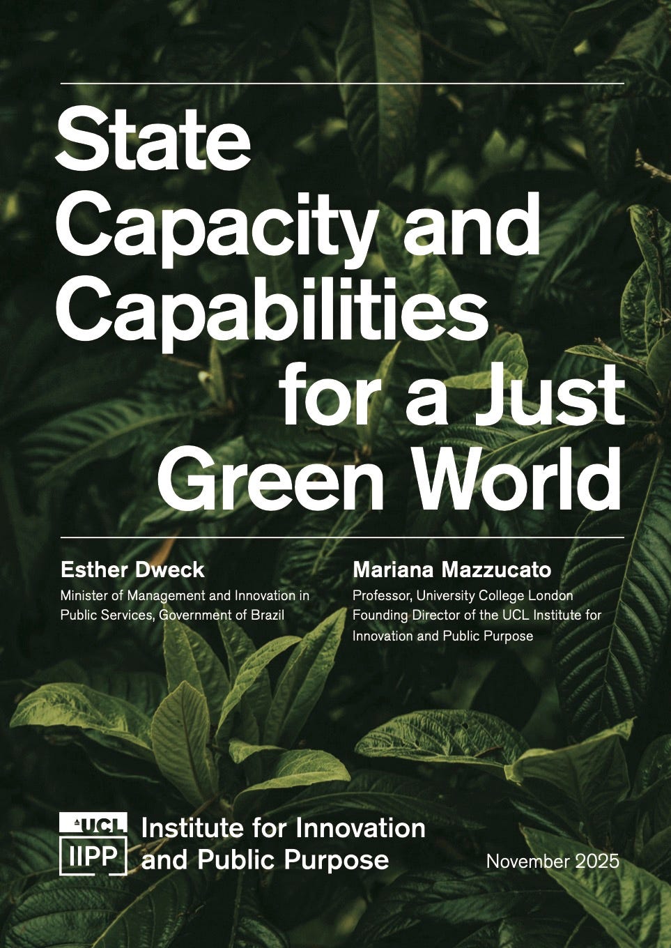 Dweck, E. and Mazzucato, M. (2025). State Capacity and Capabilities for a Just Green World. UCL Institute for Innovation and Public Purpose. IIPP Policy Report 2025/07. ISBN: 978-1-917384-41-4 Available at: https://www.ucl.ac.uk/bartlett/publications/2025/nov/state-capacity-and-capabilities-just-green-world